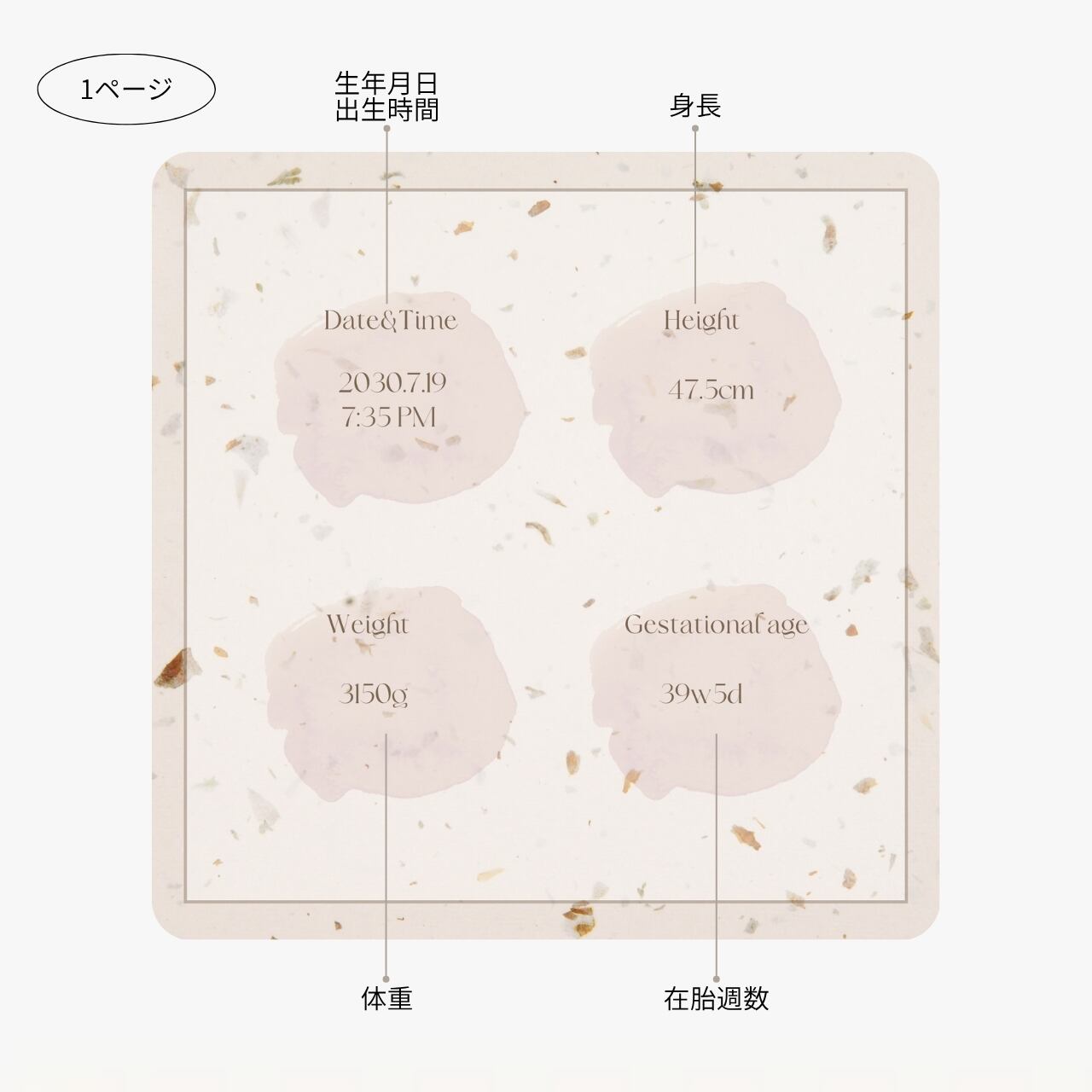 ●出生時の情報:生年月日(西暦)、出生時間(AM/PM表記)、身長、体重、在胎週数