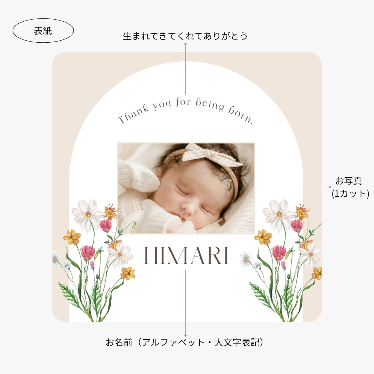 ●出生時の情報:生年月日(西暦)、出生時間(AM/PM表記)、身長、体重、在胎週数